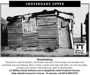 This newspaper ad recently created by Joe Public for its pro bono client, Habitat For Humanity, is causing a stir among house hunters and has even prompted foreign buyers to dig into their pockets. The ad was placed in the exclusive upmarket property section, in just the right place for the right effect!